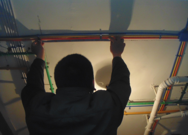 單管單線電路施工地面必須先配管,管路固定后方可允許配線和穿線。